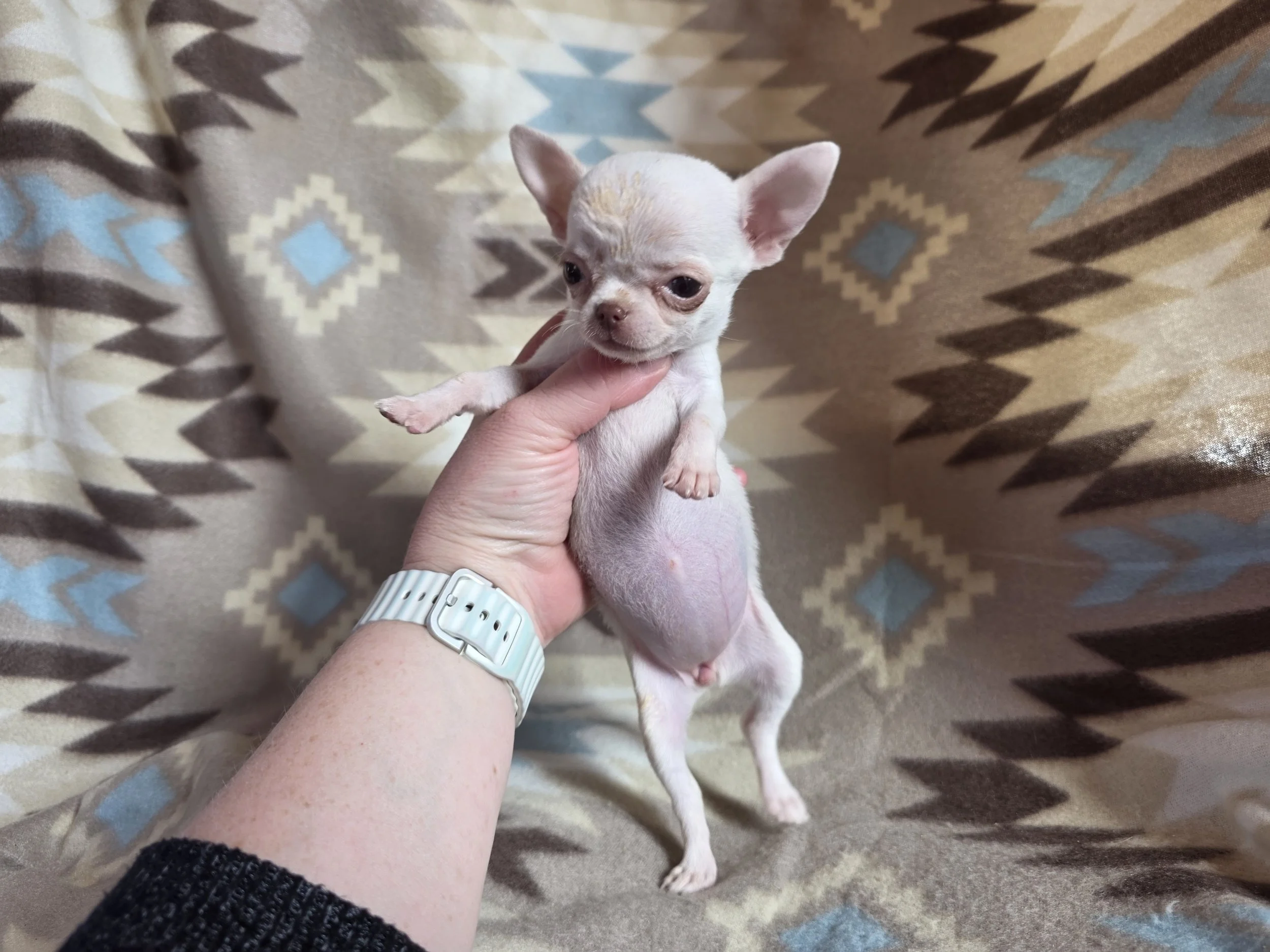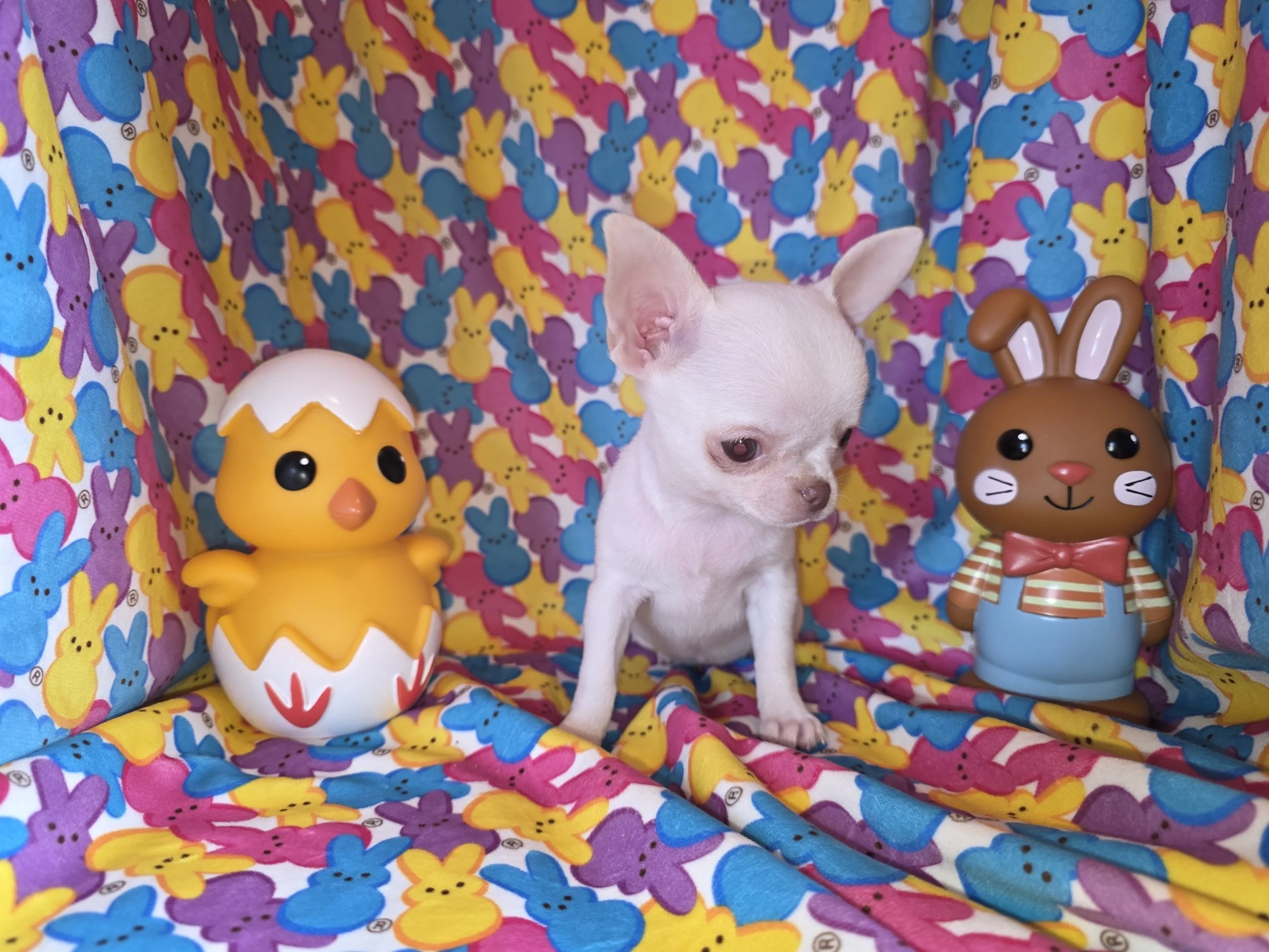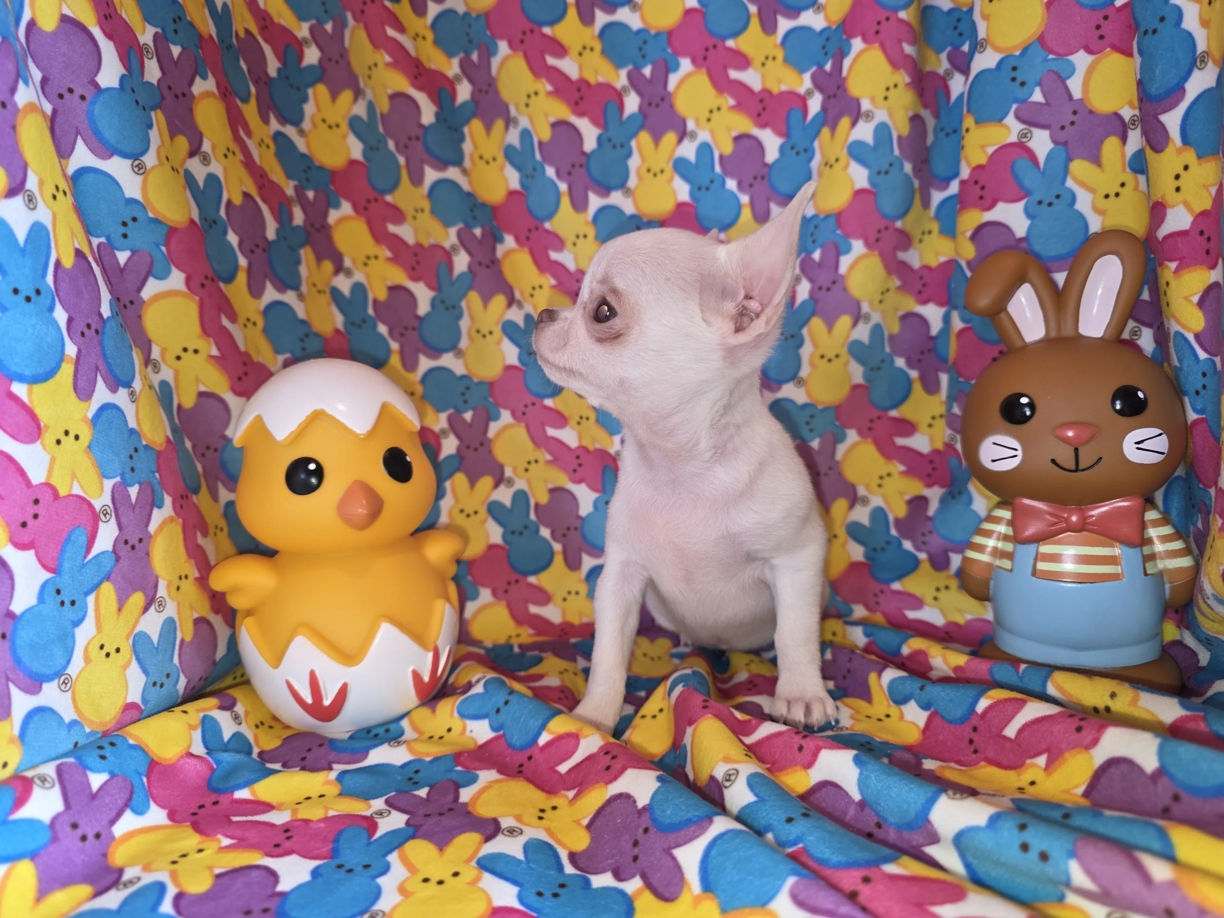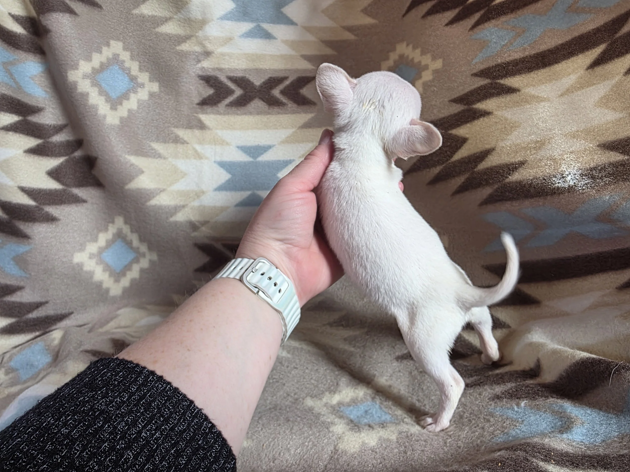 Tinkerbelle is a perfectly tiny cream smooth coat AKC female.
