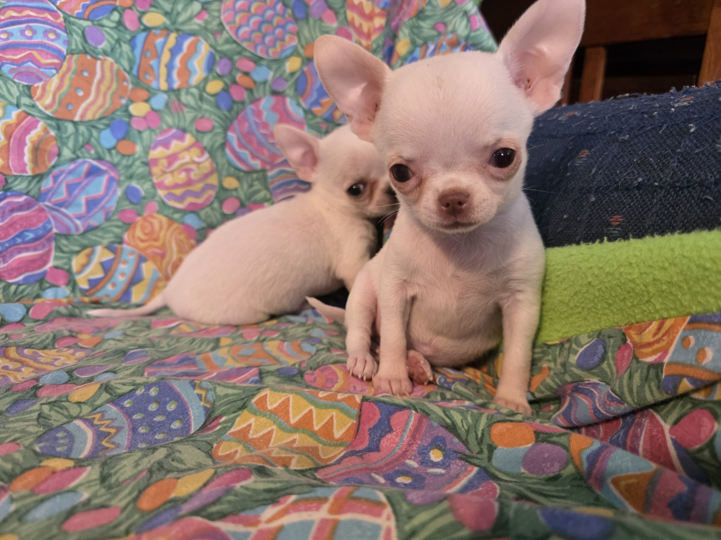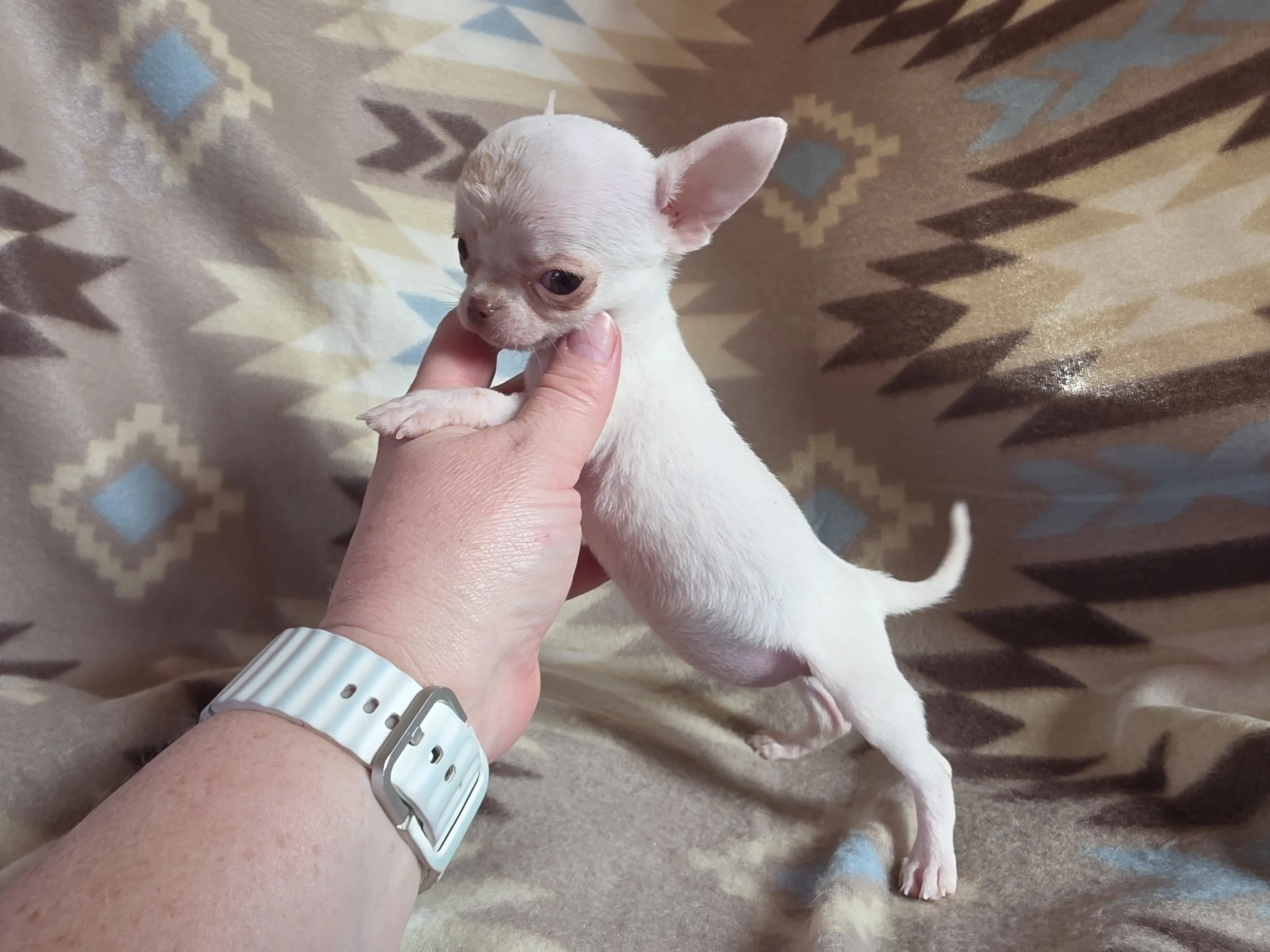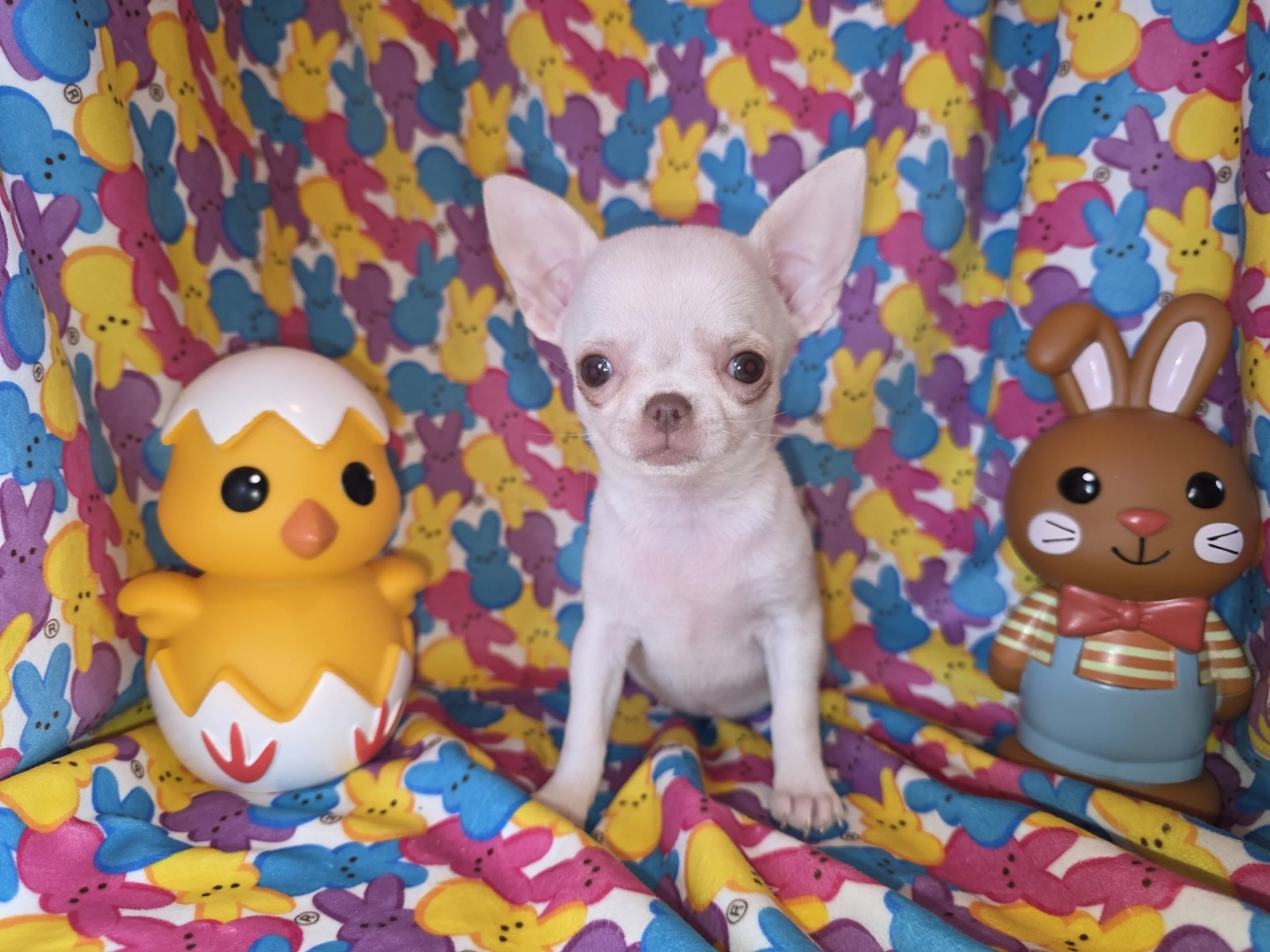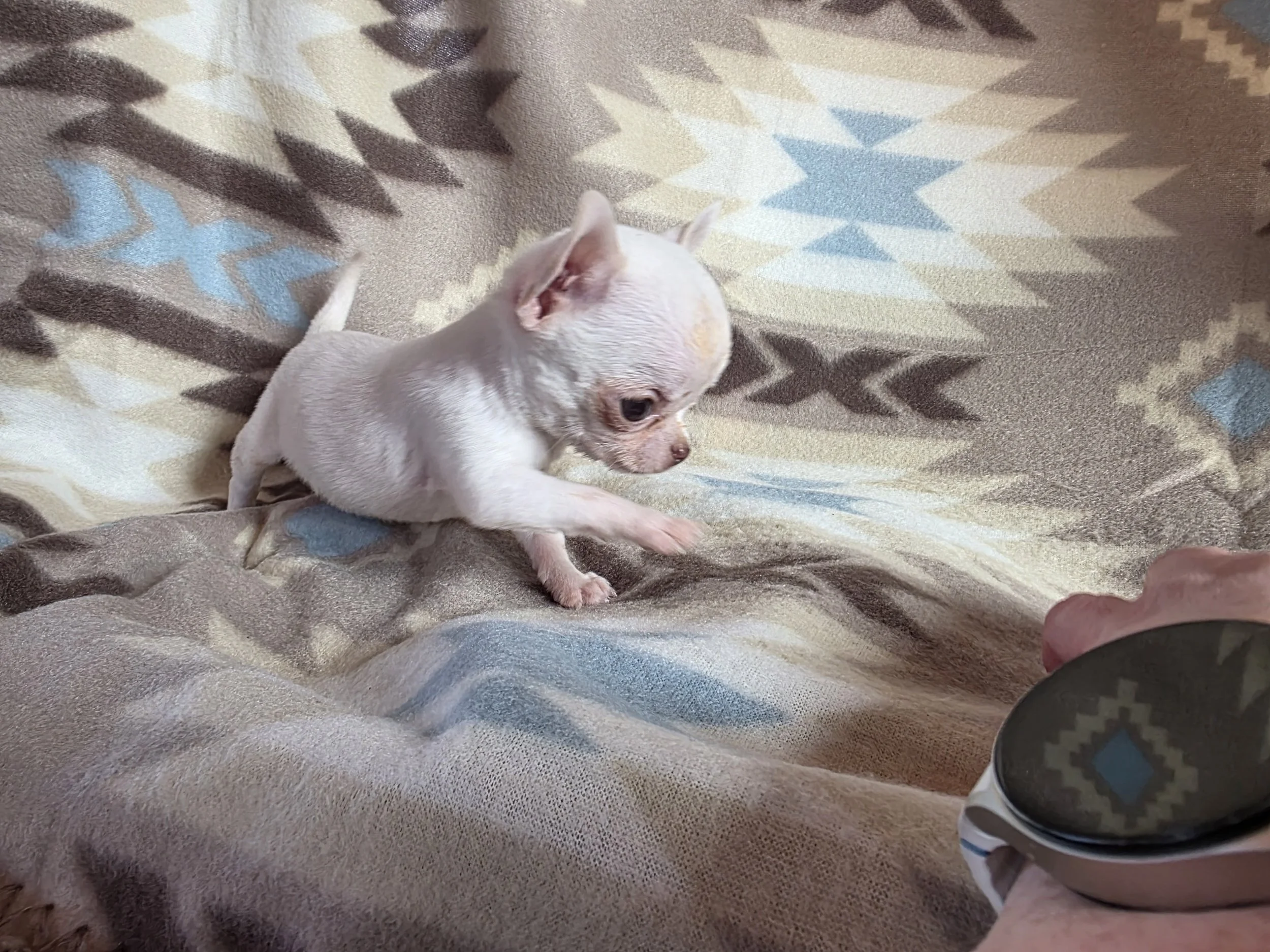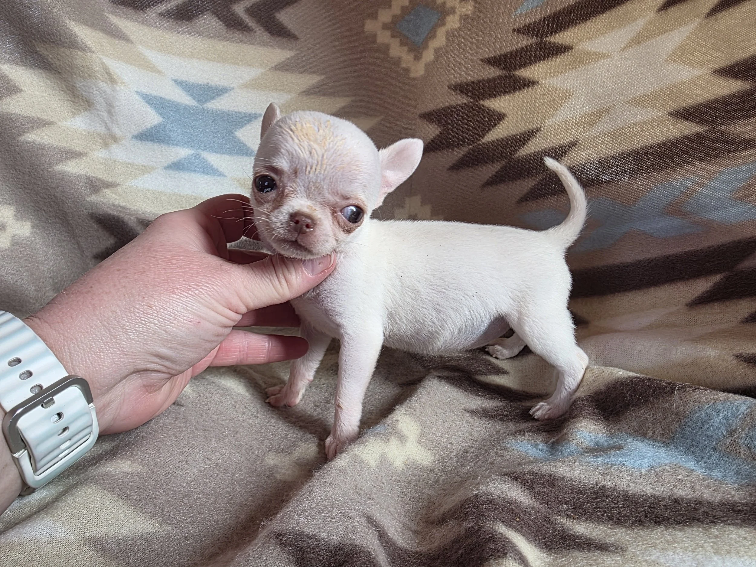 Tinkerbelle is a perfectly tiny cream smooth coat AKC female.