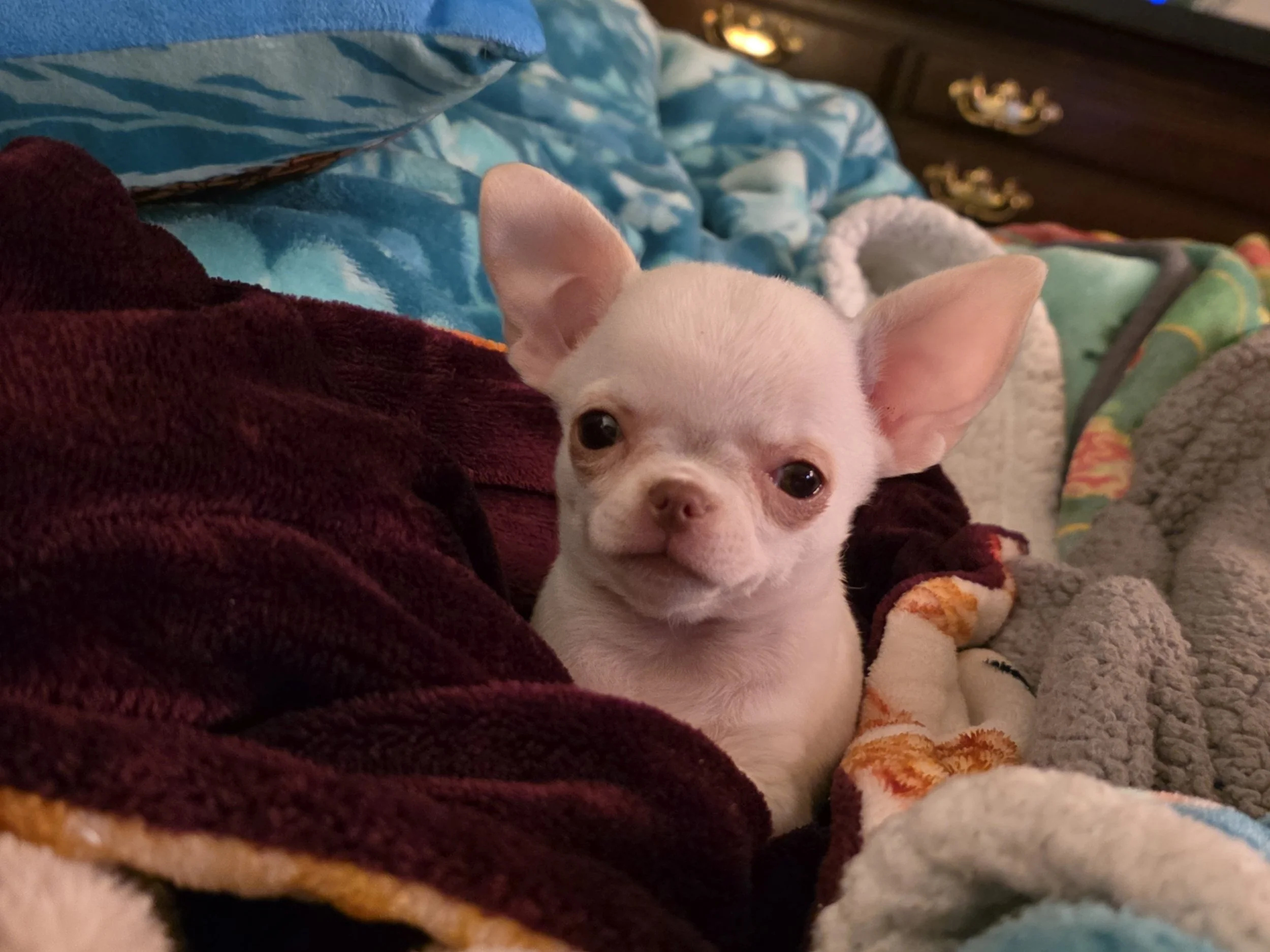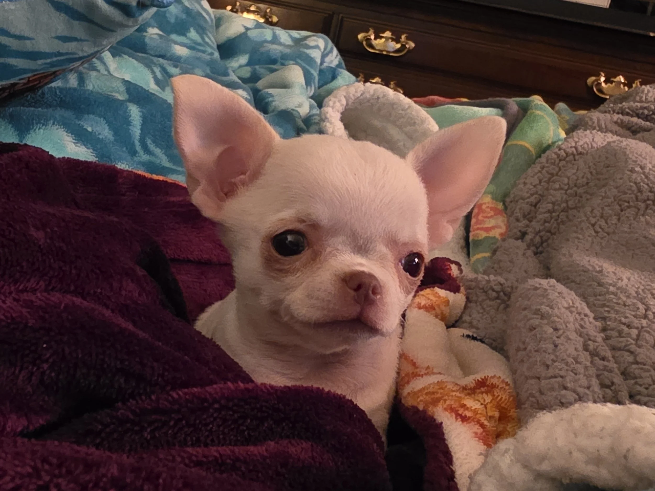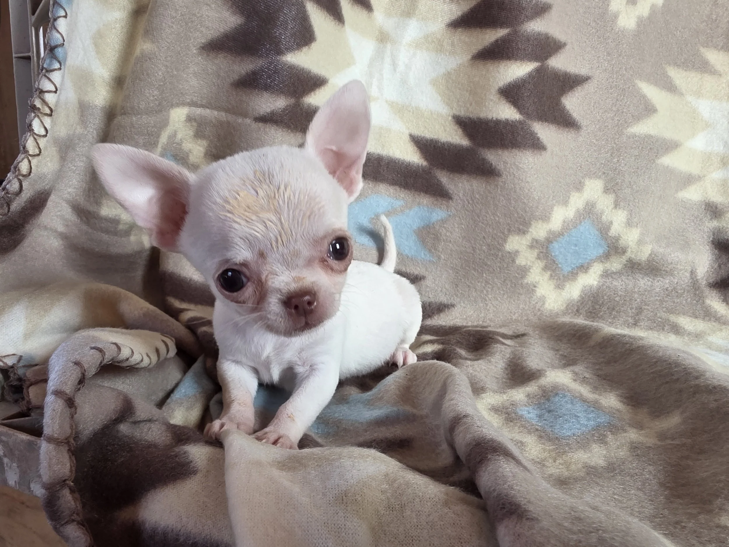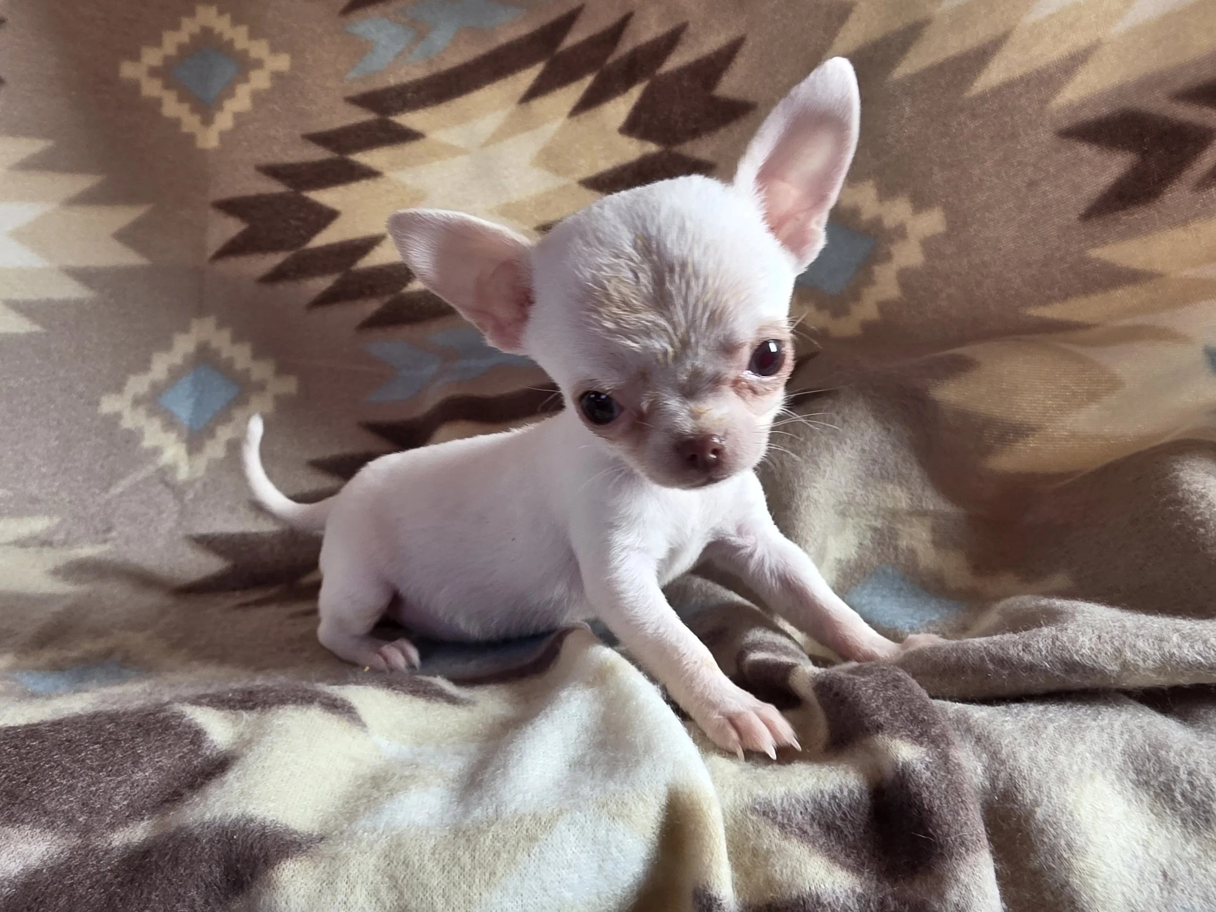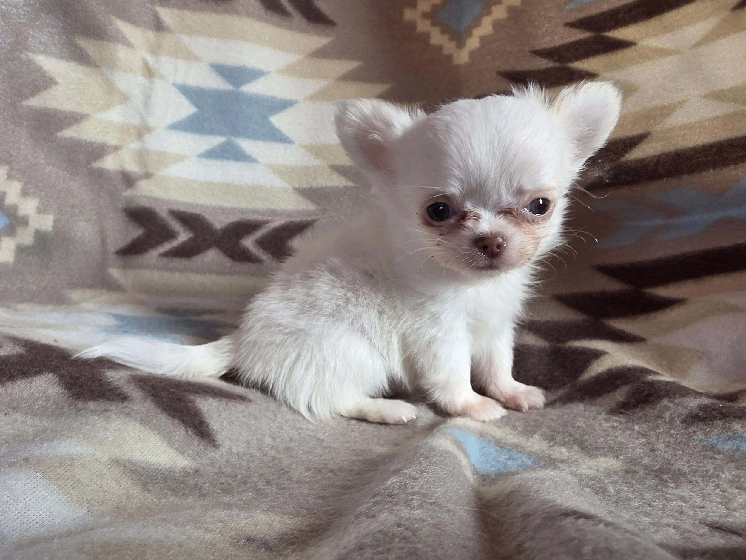 Tinkerbelle is a perfectly tiny cream smooth coat AKC female.